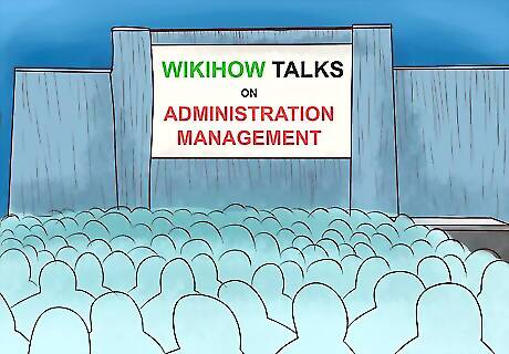 Attend conferences and events to get exposure. Attending events, especially those where there will be a variety of speakers, can help you learn about standards and procedures in your field. You will also be able to speak personally to other experts, including potential employers. If you are already working in management or pursuing a graduate degree, you should also consider applying to give presentations at conferences. You can gain exposure and receive valuable feedback on your ideas.
