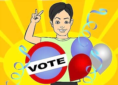 After making sure your school is okay with you putting up posters, make a ton of colorful, bright posters. Make sure they are eye-catching and have cute slogans. Being original shows people you can have original ideas in the future. For example: Making the world a better place since (insert birth year). (insert name).