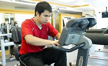 Add upper body or core exercises to your routine. One of the simplest ways to get additional benefit from your bicycling fitness regimen is to add upper body or core strength training to your regimen while using a stationary bike. Try bringing dumbbells to the gym to use while riding a stationary bike. Just be sure to keep your posture correct and to focus on maintaining balance and proper breathing.Bicycle Your Way to Fitness Step 11Bullet1.jpg Resistance bands will expand the number of upper body exercises you can do while riding a stationary bike.Bicycle Your Way to Fitness Step 11Bullet2.jpg Focus on tightening your abs and holding your shoulders in good posture while you cycle to help strengthen your core and shoulders. To work your abdominal muscles even further, place your hands behind your head and cycle slowly while twisting the upper body side to side gently, keeping abs tight.Bicycle Your Way to Fitness Step 11Bullet3.jpg Perform flexibility exercises while cycling, such as shoulder rotations, yoga sun salutations, butterfly movements, and other movements that help tone and stretch your upper body muscles.