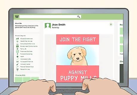 Start a blog, website, or social media page. While newspapers are tried and true, people are more and more looking online for news and information. Creating a blog, website, or social media page can help you spread the facts about puppy mills to a broader audience. An online presence can also be updated regularly, so you can keep your readers informed about boycotts and new local regulations.