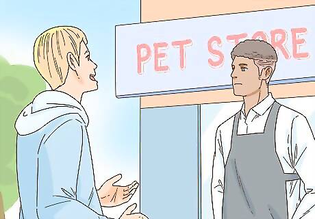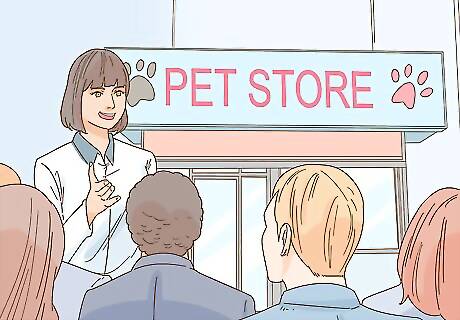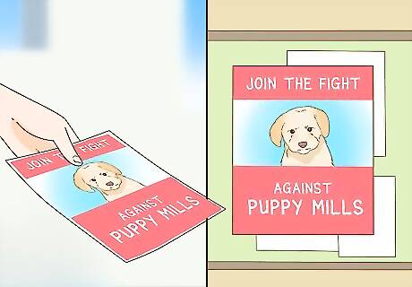Encourage your friends and neighbors to take a no puppy mill pledge. The ASPCA, US Humane Society, and other websites and institutions encourage consumers to pledge not to shop at pet stores that sell puppy mill dogs. Take a pledge yourself, and organize a group pledge with your friends, neighbors, and other members of your community. In addition to promising not to buy puppies from inhumane sources, you should encourage your community not to buy any pet supplies or offer any business whatsoever to inhumane stores.
