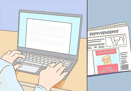 Write a letter to the editor in your local newspaper. One of the most established ways of getting the word out about puppy mills and related boycotts are local newspapers. Consider writing a letter to the editor or an opinion column to discuss your organized boycott. When writing about puppy mills, be sure to mention alternatives, such as adopting from a local shelter.