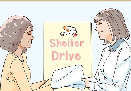Support your local shelter by organizing a drive. Humane, no-kill shelters are a great alternative to puppy mills and pet stores that source from them. Encourage your community to adopt from these shelters rather than shop at a pet store. Find a local a no-kill animal shelter and stage a benefit for them. Organize a shelter drive, and collect both monetary donations and items that will be useful to the shelter. Useful items include toys, beds, blankets, leashes, collars, food, and treats. Start your own spare change jar, putting your change in the jar at the end of each day. When it’s full, donate it your local no-kill shelter to donate. Always encourage your community members to adopt from and donate resources to no-kill shelters.