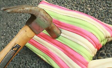 Determine how you will contain the pieces of your broken rock. Some suggestions are: A denim bag (You could make one from an old pair of jeans) A box (Could be somewhat awkward) A corner