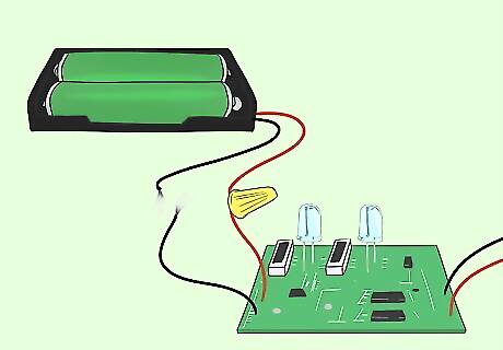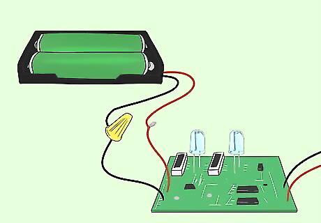 Glue the battery holder and circuit board together by applying a small amount of glue to the bottom of the circuit board and pressing it to the top (where the batteries are not facing) of the battery holder.