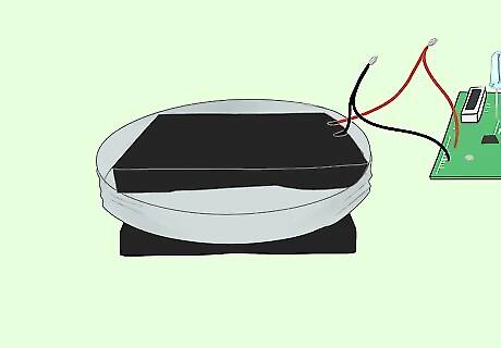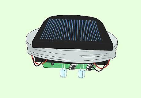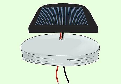 Glue the solar panel to the top of the lid. Apply a small amount of glue to the bottom of the panel (the side that does not look like a grid and has the wires coming out of it) and press and hold the panel to the top of the lid for about a minute. It might not lay completely flat which is okay. Make sure it stays in place though.