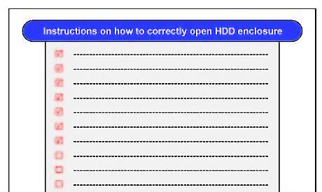Screw the HDD into the enclosure. 4 or more screws were supplied with the enclosure. There will be 4 holes, 2 on each side of the HDD, and corresponding holes inside the enclosure.