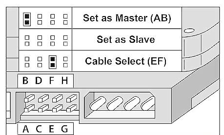 Set your HDD to the Master setting (or Master/No Slave if one exists). This jumper setting is located between the Molex power connector (4 large round pins) and the ATA/SATA connector. You will see 2 rows of four or five small pins, and a small clip (jumper) connected to 2 of them. Pull out the jumper with a tool such as tweezers or a pencil, and place it in the Master position if it is not already there. A diagram of the different jumper settings can usually be found right on the top label of the HDD.