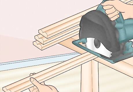Cut 4 face panels for a traditional-looking cabinet. You can use lumber in any size to make 4 panels that fit together like a picture frame. For instance, use 1x2s, 1x3s, or 1x4s. Keep in mind that the wider lumber makes more noticeable face frames. You'll be attaching the frame to the front of your cabinet box so they should match the height and width measurement for your cabinet. For example, if your cabinet is 24 by 36 inches (61 cm × 91 cm), you should have 2 long frame pieces that are 36 inches (91 cm) long and 2 short pieces that are around 24 inches (61 cm) long—if you're using common measurements. If you prefer a more modern-looking cabinet, you can skip the face panels and install drawers or doors directly onto the cabinet. These are known as frameless cabinets.