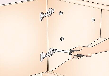 Buy cabinet doors and screw them onto your cabinets. Sure, you can make your own cabinet doors, but it's usually more economical to buy high-quality, professional-looking doors and install them yourself. Doors are totally optional, especially if you're going for an open, airy look.