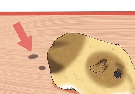 Look for signs of diarrhea. Diarrhea and other symptoms of an upset stomach can indicate a sickness in the guinea pig. Look in the corners of the cage or the guinea pig's litter box to see if you find any diarrhea. Diarrhea can be a symptom of a bacterial infection or a virus. It can also be a sign the guinea pig has parasites of some sort. Once you pick the guinea pig up, you can also check its rear end for signs of diarrhea.