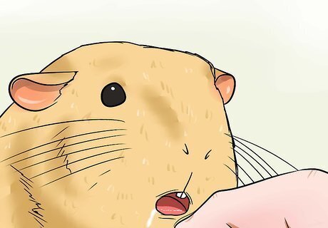 Check for drooling. Drooling may seem fairly innocent, but it can be a symptom of a common guinea pig condition. The condition is sometimes referred to as "slobbers" because of the drool. This condition is usually a sign that the teeth are out of alignment, causing problems with eating. You can also look at the guinea pig's teeth to check to see if they're aligned. The two top front teeth should fit perfectly over the two bottom teeth. The condition can be caused by any number of factors, from a lack of vitamin C to genetics. While a guinea pig can live with this condition, it will likely need to have some teeth filed down at the vet, and it may need regular vet visits.