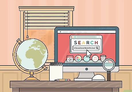 Look for a broker with international experience. Typically, you'll simply choose an online broker. However, if you're thinking about using a full-service broker, look for one who has experience with international bonds so they can provide you with solid advice. If you've been investing for years and have a relatively substantial portfolio, a full-service broker can guide you towards international bonds that will provide geographic balance for your portfolio while protecting against the risks associated with international investing. Full-service brokers may also have access to international bonds and bond funds that aren't available with online brokers.