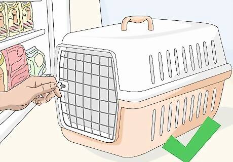 Buy a cat carrier. In order to bring your new cat home you will need to get a cat carrier. Your can get a soft-sided or hard-sided carrier but just make sure that it is big enough for your cat. In order to get the right size, just make sure the cat is able to stand up and turn around in its carrier. It is also important to make sure that the carrier you choose closes easily and can be latched securely. If you get your cat from a pet store or an animal shelter you may be able to purchase a carrier when you get the cat.