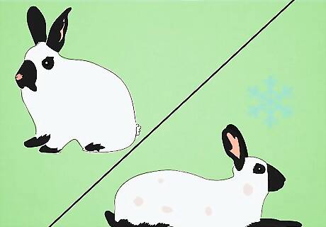 Understand that the color of Himalayan rabbits is temperature sensitive. The color on the Himalayan rabbit can change depending on the temperature. The colored patches of hair can darken if exposed to cooler temperatures, but lighten if exposed to warmer temperatures. If your rabbit lies next to something cold, his white fur can get dark spots on him.