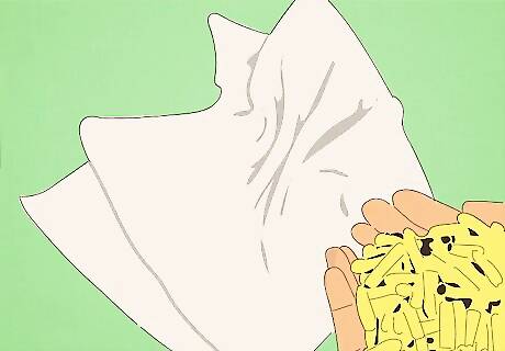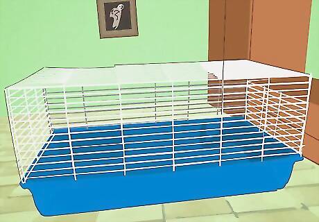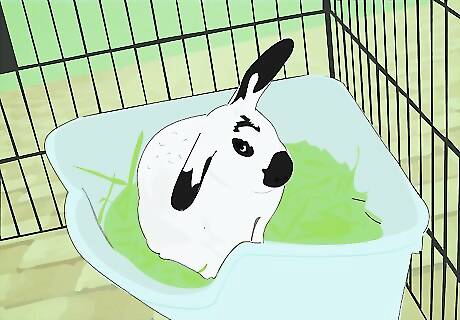 Provide a litter box. Confine your rabbit in his cage with a litter box in a corner he has already soiled. He will use the litterbox to keep his cage clean. Make sure the litter box sides are low so he can hop in and out easily. Try placing hay or a few of his droppings in the litter box to encourage him to use it. If you let your rabbit run around the house, consider setting up multiple litter boxes.
