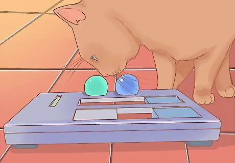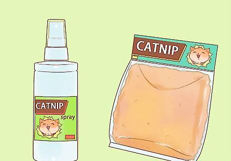 Give your cat catnip. For a fun diversion, give your cat catnip, a herb that causes a moderate "high" in many cats. Purchase catnip at a local pet store in dried, pellet, plant, or spray form. Try inserting a small amount of dried catnip into refillable cat toys, or making your own catnip spray to apply to areas like your cat's bed or scratching post.
