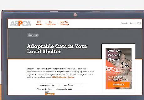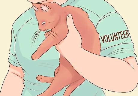 Volunteer with cats. Check out local animal shelters or cat rescue groups to volunteer your time. Call or visit their website to see if they are looking for volunteers, and to apply if they are. Volunteer duties may range from cleaning cages and litter boxes to meetings with prospective adoptive individuals, and training is usually provided.