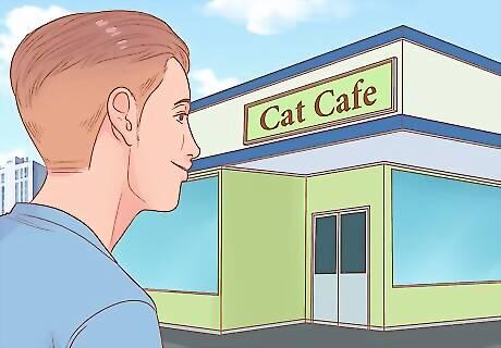 Visit a cat café. Cat cafes originated in Taiwan and came to the states in 2014. Essentially, cat cafes are establishments where customers can order food and beverages while observing and playing with the café’s resident cats, which in many cases are foster cats from local shelters. Browse local business listings to find a cat café near you, or plan a special road trip around your visit to one. For instance, visit Cat Town Café, the first cat café opened in the U.S., located in Oakland, California.