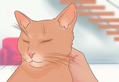 Cuddle your cat. Cuddling your cat can be a great bonding experience, but it shouldn't be pushed or forced. Be gentle and avoid touching its tail, which cats are often sensitive about. Focus on petting your cat's back and under its chin, and give your cat space if it gives you signs that it has had enough (e.g. swatting away your hand or distancing itself from you).