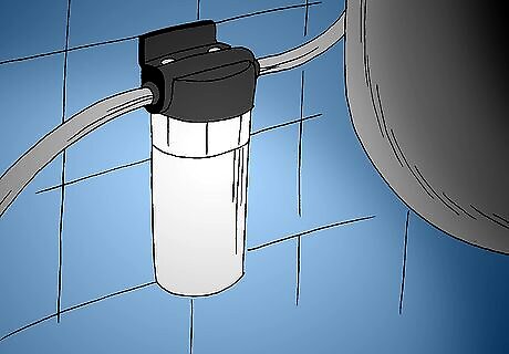 Screw the new cartridge and the plastic casing into the receptor under the sink. Do not overtighten, as this may break the cartridge.