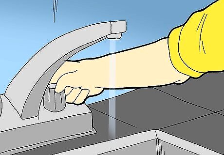 Remove the remaining water in the filter hoses by turning your filtered water on as you normally do above the sink. If you completed step 2 correctly , the water should stop flowing within a few seconds.