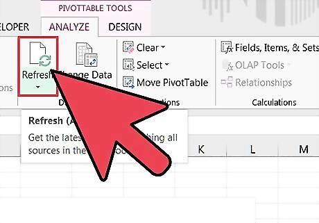 Refresh the pivot table by clicking the "Refresh" button. This button may have a red exclamation point icon, a green "recycle" icon or simply the word "Refresh," depending upon your version and degree of personalization of Excel.
