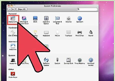 Click on the icon labeled “Color” located near the bottom of the window. The Color and Appearance control panel will display on-screen.
