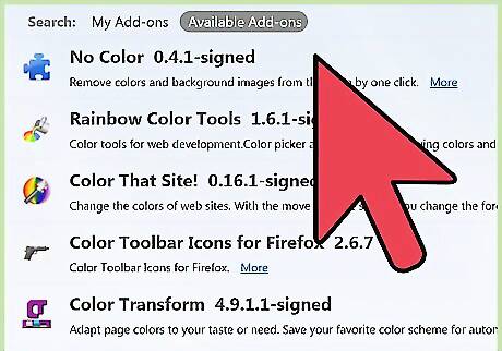 Type keywords into the search field to locate extensions and add-ons that will allow you to change the color of your browser’s toolbar. For example, type “toolbar color” or “modify toolbar.”