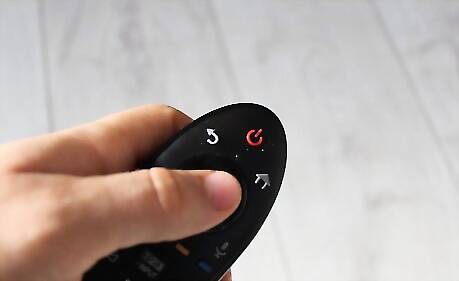 Have the correct remote. If a person has 7 Samsung TVs or Monitors that are TVs, there are remotes everywhere. The one for the Smart TV has a button on the left in the middle of the remote that says hub Smart. On the top of the remote there are three buttons: left is a red power button (turns on TV), right is a yellow light button (lights up remote. And in the middle is the source button.