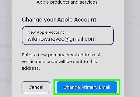 Click Change Primary Email. This is the blue button at the bottom-right corner.