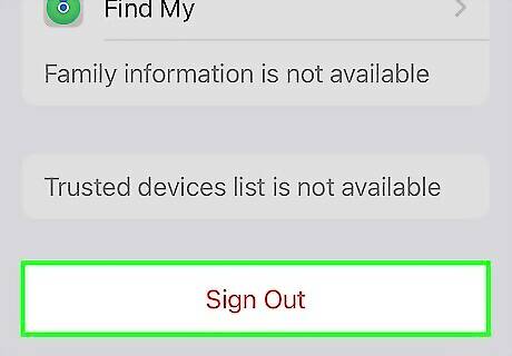 Tap Sign Out twice. You'll be logged out of your Apple Account. Return to the main Settings page.