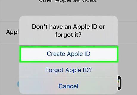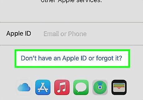Tap Don't have an Apple Account or forgot it?. This will be underneath the Apple Account field. If you already have another Apple Account, enter the information to log in now.