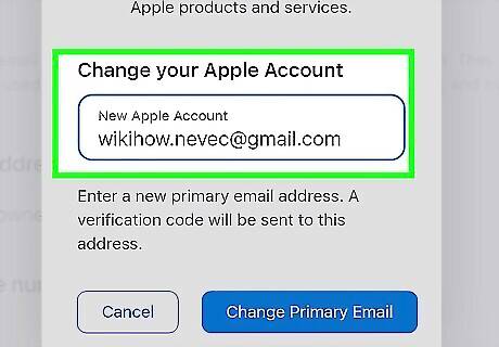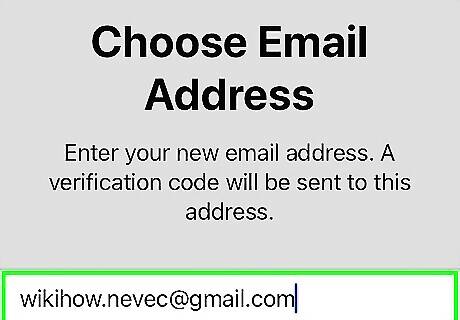 Enter a new email address and tap Continue. Make sure to spell it correctly. A verification code will be sent to the email address.