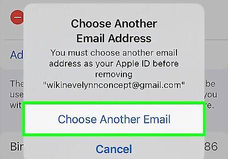 Tap Choose Another Email. If you're asked to enter your device passcode, enter it now.