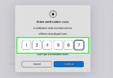 Enter your password and tap Continue. Make sure to spell it correctly. A verification code will be sent to the email address.