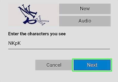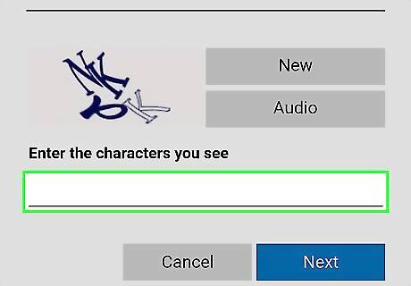 Enter the jumbled characters. Tap the text box near the bottom of the screen, then type in whatever characters are in the jumble. You can tap New next to the character jumble to reset it.