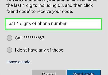 Click Send code. It's below the text box. A verification code will be sent to your email address (or phone).