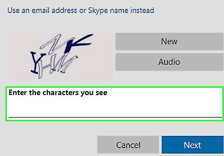 Enter the jumbled characters. In the text box near the bottom of the page, type in the characters that you see in the middle of the page. You can click New next to the characters to reset the jumble.