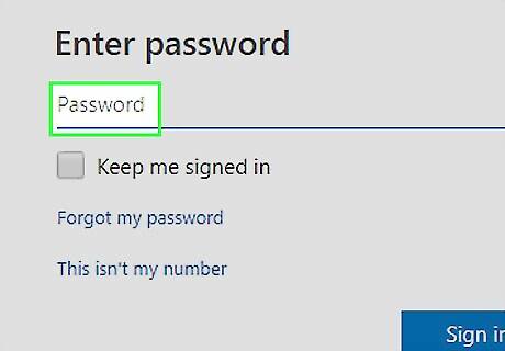 Enter your password. When prompted, click the "Enter password" text field, then type in the password you use to log into Skype. If asked to verify your identity instead, select a verification method, enter the missing information, and then retrieve the verification code from your email address or phone and enter it in the provided text field. You can then skip the next step.