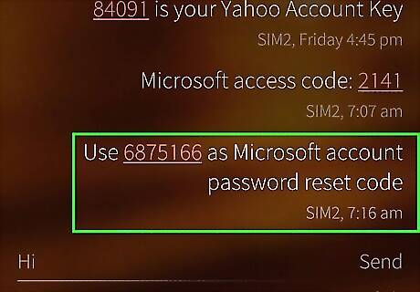 Retrieve the code. To do so: Email — Open your recovery email inbox, tap the "Microsoft account password reset", and review the "Here is your code" code in the email. Phone — Open your phone's Messages app, select the message from Microsoft, and review the code in the text message.