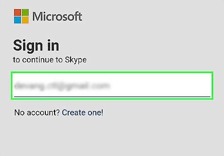 Enter your Skype email address. Tap the text field in the middle of the screen, then type in the email address that you use to log into Skype.