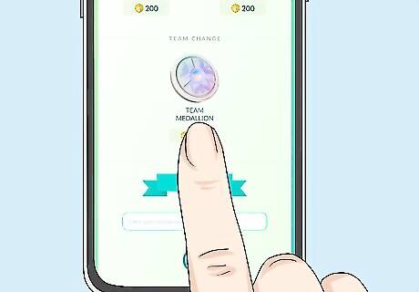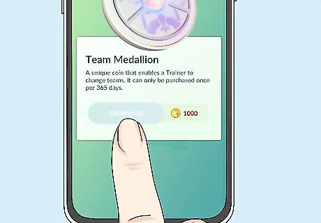 Scroll down and tap TEAM MEDALION. You can find this item in the "TEAM CHANGE" section of the shop. It will open the selected item's details. You won't see this item unless you've already reached level 5, and picked a team.