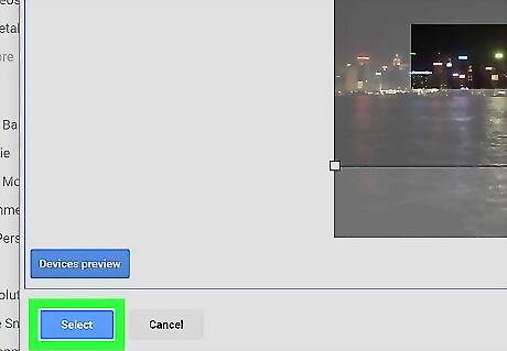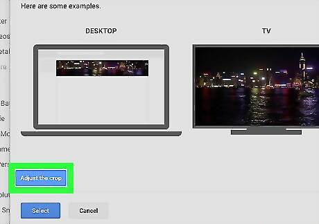 Crop or enhance the image (optional). After selecting the image, you'll see a preview of how it will look on a computer, TV, and mobile phone or tablet. Click Adjust the crop if you want to trim the image to a different size. Drag the box to surround the part of the image you want to keep, and click Devices preview to see how it will look. To automatically adjust the lighting and color of the image, check the box next to "Auto Enhance" at the bottom-right corner of the window.