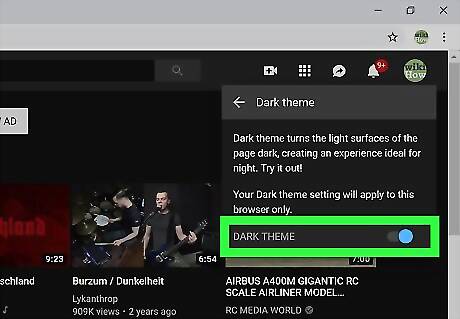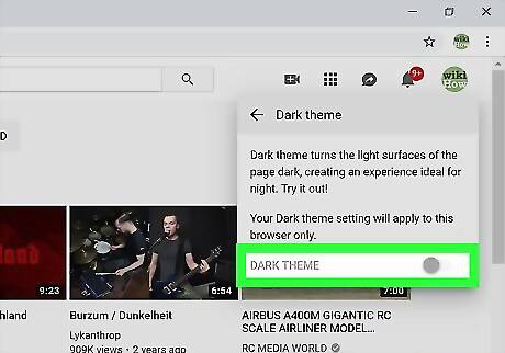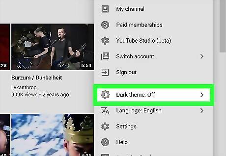 Click Dark theme On/Off. You'll see either "On" or "Off" depending on whether you're currently using the dark theme.