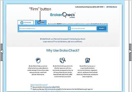 Research the firm the broker works for by going online. Unless the broker works on their own, they are a representative of a brokerage firm. That firm could have complaints against it too. Use the brokerage firm’s name or CRD number on FINRA’s BrokerCheck tool. Click the “Firm” button on the top of the search page. Also, do a routine search by typing the firm’s name into a search engine. Firms with serious complaints leveled against them can be bad news for your money. Check into them through FINRA or a regulator. Even if the broker has a clean record, the firm may not. This will also give you an opportunity to see what services the brokerage firm covers. Discount brokers, for instance, require you to choose your own investments. Full-service firms have higher fees but offer more advice.