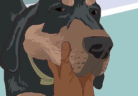 Look for a swollen jaw. A swollen jaw may be easily seen by looking at your dog’s face. A swollen jaw may mean that there is an infection in the gums or around a tooth root. If the jaw is swollen, there may be a lump around the eye socket or around the neck. Abscesses that cause swollen jaws can get so bad that they break through the skin and leak pus onto the fur.