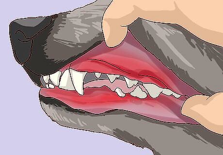 Look for red gums. Dental disease can be detected by looking at the state of the gums. Your dog’s gums should be pink and healthy looking. If they have gum disease, the gums may be red or swollen. Red, swollen gums may mean that your dog has gingivitis. If your dog’s gums start bleeding, they may have periodontal disease.