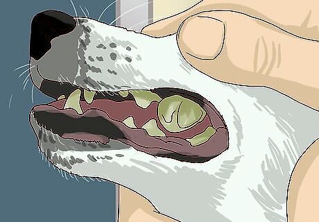 Monitor your dog’s breath. One of the most common signs of dental disease in dogs is bad breath or “doggy breath.” Your dog should not have bad breath. Bad breath can mean an infection of the gums or teeth. Bacteria from tartar build up can also cause an odor. If your dog has a healthy mouth, their breath will not smell.