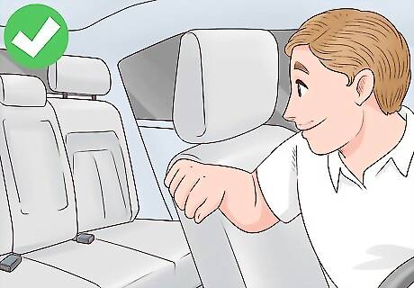 Look before you lock. Check the back seat every time you get out of your car to ensure that all of your children have exited the vehicle. Keep your handbag, computer bag, or work files in the back to help make it a habit to always check the back seat every time you park. Get into the habit of checking the back seat of your car every time to avoid accidentally leaving your child behind in a locked car. You can purchase a backseat baby alarm to remind you to do this. Never leave your keys in your car, even when it's parked. Keys can be dangerous for your child, and unattended keys are a security risk for you, your child, and your car.